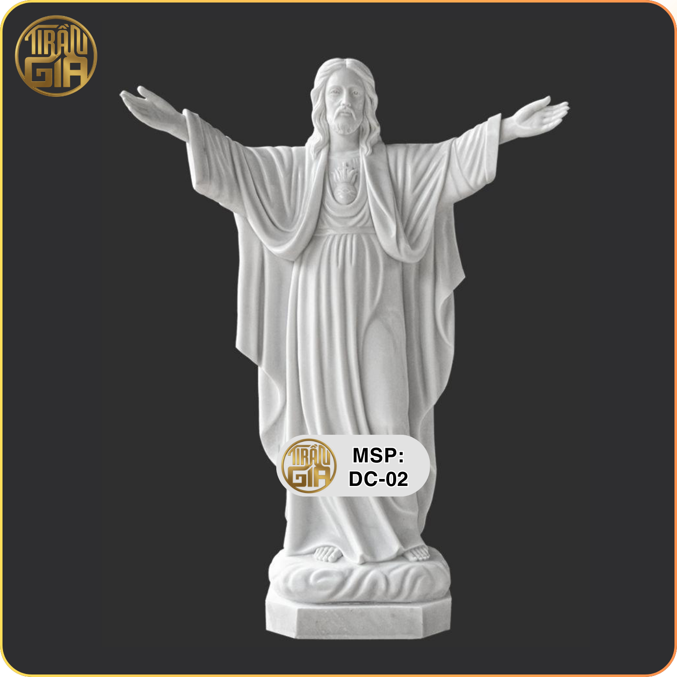 Tượng Chúa Giêsu Thánh Tâm chế tác từ đá tự nhiên cao cấp. Thủ công, bền đẹp — phù hợp nhà thờ, giáo xứ, gia đình Công giáo.